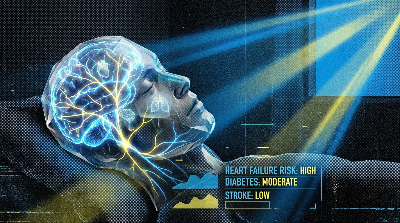 We are talking serious conditions: it flags risks for heart failure, diabetes, and stroke years in advance.